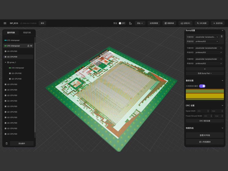 提供从网表生成、原理图设计到3D布局和布线数据的chipuller一站式解决方案。芯片电路设计流程复杂,需要多个工具和平台。一个集成平台,简化整个设计流程,提高效率。