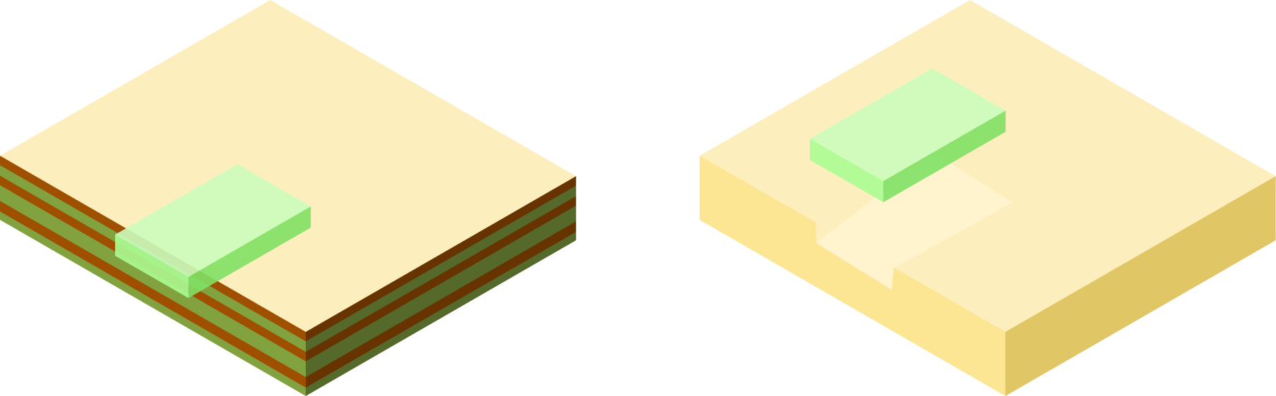 目前在 3D 布局中,在执行对应的操作时,下嵌的器件与Substrate只是简单的重叠在一起,移开后在基板上并没有实际产生凹槽。